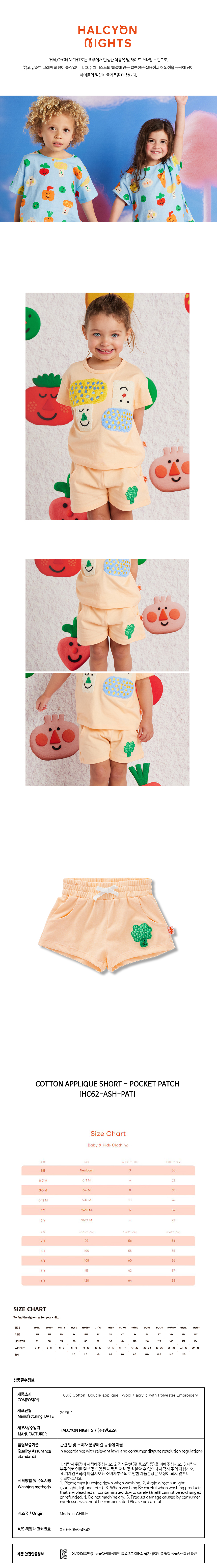 (C)COTTON APPLIQUE SHORT - POCKET PATCH(HC62-ASH-PAT)